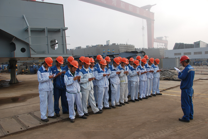 船舶總裝工程部在落實“每日一學”過程中,注重班組思想文化建設,強化班組每日安全制度學習。他們根據不同工種、不同區域編制安全作業手冊,下發到各班組學習使用。把安全生產工作作為班組各項工作的重中之重,作為頭等大事來抓。通過班組安全文化建設,把先進的安全管理理念融入到每個成員的頭腦中,樹立起 “我要安全”的自覺意識、安全價值觀。通過工前會“每日一學”,抓好對“習慣性違章”的監督檢查和整改措施,提高了員工安全事故的預知預防能力、控制和解決能力。
