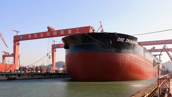12月30日上午,公司建造的40萬載重噸礦砂船8號(hào)船從1號(hào)造船塢順利出塢,并靠泊3號(hào)碼頭。這是公司建造的8艘40萬噸礦砂船中的第8艘出塢船舶,也是最后一艘。截止今年12月底,公司已成功交付40萬噸超大型礦砂船6艘,4號(hào)、8號(hào)船將于2019年首季交付。