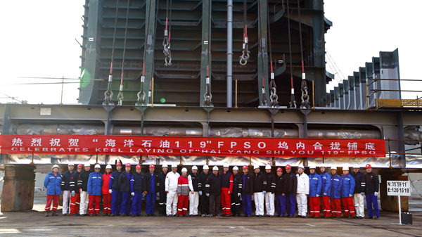 12月31日下午,公司新承接的“流花16-2油田群開發(fā)項(xiàng)目FPSO船體建造”工程在造船1號(hào)塢按期鋪底。這是公司繼2007年成功交付10萬噸級(jí)海上浮式生產(chǎn)儲(chǔ)卸油船“海洋石油115”之后,時(shí)隔11年重新進(jìn)入FPSO新建造市場。該工程于2018年年6月簽約、開工。公司為此專門成立了流花FPSO項(xiàng)目部,嚴(yán)格按照生產(chǎn)節(jié)點(diǎn)計(jì)劃,抓好工程安全和質(zhì)量工作,并定期組織周檢、月檢,實(shí)施HSE管理創(chuàng)新工程,嚴(yán)把質(zhì)量制造關(guān),確保了工程順利推進(jìn)。公司副總經(jīng)理鮑會(huì)勇和業(yè)主、總包方代表,CCS船級(jí)社代表、BV船級(jí)社代表,以及部分造船部門的領(lǐng)導(dǎo)和職工出席了開工儀式。