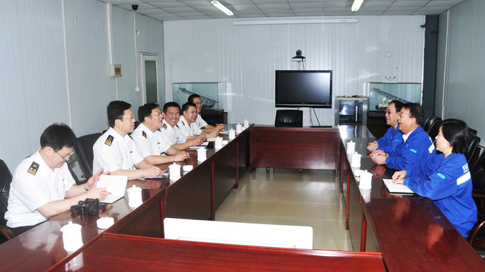 李書記對海關客人的來訪表示歡迎,對長期以來海關對公司進出口業務的支持幫助表示感謝。李書記向客人介紹了公司的生產經營情況和進出口業務的開展情況,與海關客人共同回顧了企業的搬遷過程以及搬遷給企業帶來的巨大變化。高副關長介紹了海關近期的重點工作和專項檢查工作,表示從海關的統計數據可以看到北船重工近年來取得的可喜發展,也對公司依法有序地開展進出口業務工作表示贊賞,并重點對公司近期的加工貿易業務特點進行了仔細詢問和了解。