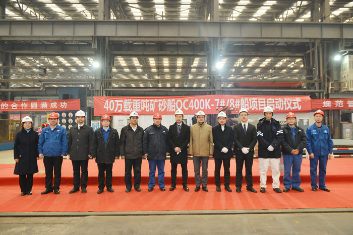 1月19日上午10時38分,公司為工銀金融租賃有限公司建造的40萬載重噸礦砂船7號、8號船啟動儀式,在造船聯合廠房舉行。這是繼2016年之后共開建了四艘40萬載重噸礦砂船。