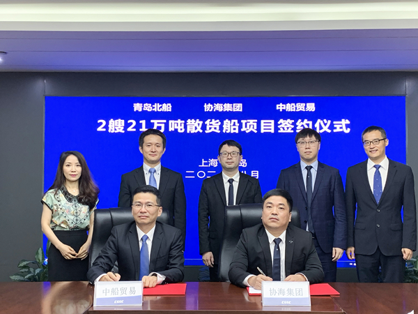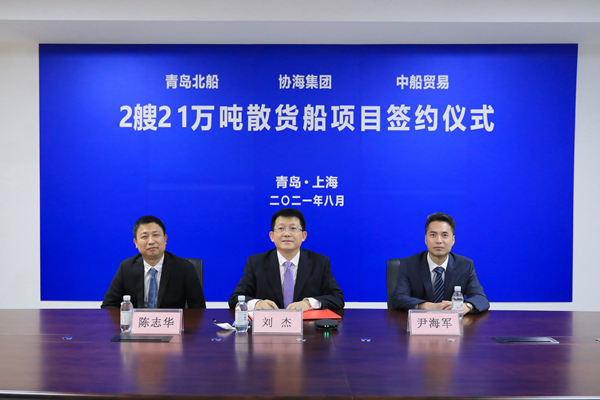 8月16日,中國船舶工業貿易有限公司、青島北船重工與浙江協海集團有限公司在中國上海、青島兩地通過視頻連線方式舉行了兩艘21萬噸散貨船項目云簽約儀式!