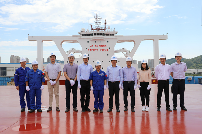 韓兵向黃志強(qiáng)一行介紹了公司的基本情況及主要產(chǎn)品,并邀客人共同觀看了公司宣傳片和40萬(wàn)噸專題片。交流座談中,韓兵首先感謝了中信保過(guò)去幾年在項(xiàng)目承保上對(duì)船廠的支持,使船廠能夠更加放心地開拓國(guó)際市場(chǎng);為進(jìn)一步加強(qiáng)雙方合作,韓兵提出建議,希望中信保在一些細(xì)分的特種船和海工市場(chǎng)上給予船廠政策扶持,助力船廠市場(chǎng)開拓。會(huì)后,韓兵陪同中信保來(lái)訪領(lǐng)導(dǎo)參觀了40萬(wàn)噸6號(hào)船。