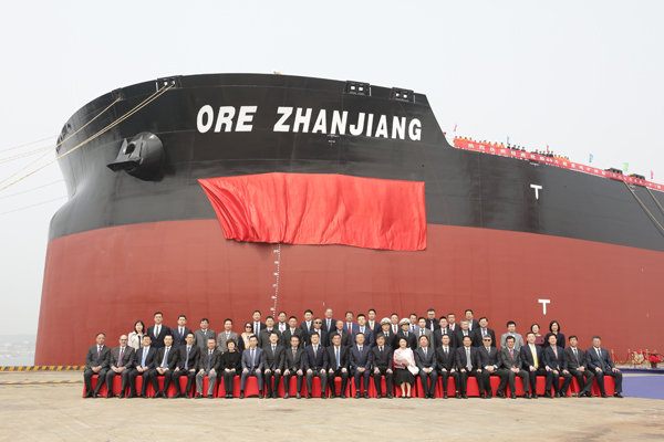 命名儀式由公司常務副總經理劉杰主持,武船集團總會計師李應昌、中船重工副總經理姜仁鋒、青島市副市長朱培吉、湛江市市長姜建軍、工銀金融租賃副總裁王振勇,招商局集團副總經理鄧仁杰先后致辭;姜建軍、歐先偉、崔青、鄧仁杰、王永新、張翼、王振勇、朱培吉、姜仁鋒、于逢平、李應昌共同為“ORE ZHANJIANG”號交船剪彩。