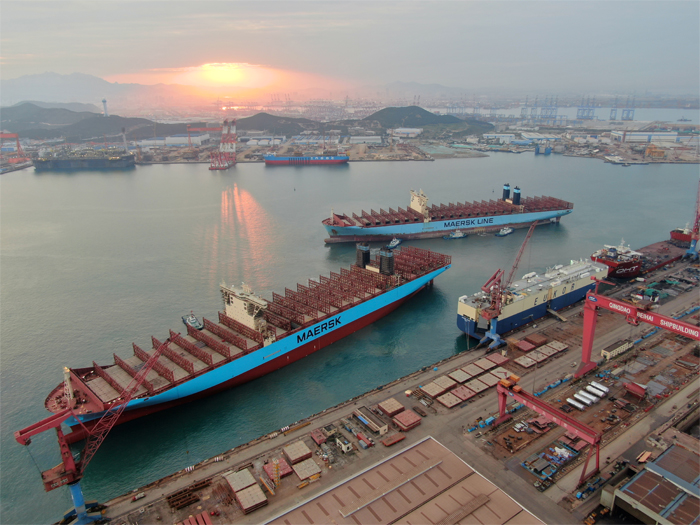 修船分廠承修的超大型集裝箱船“美若馬士基”與“美庚馬士基”輪均為18000TEU集裝箱船,需在9月12日下午完成出塢、進塢作業。分廠兩名年輕的港作指揮員在作業時間受限、回旋水域狹小、拖輪不足的情況下,僅用3個小時即完成雙船同時出塢進塢作業,圓滿完成分廠中秋節前生產任務的重要節點,并創下北船引航作業的多項記錄。