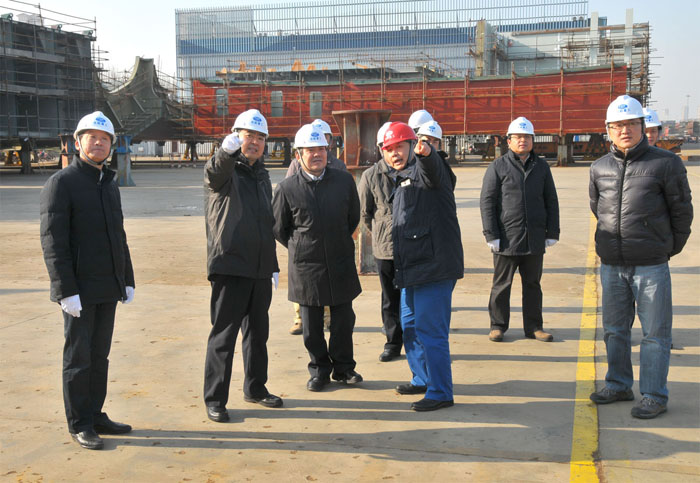 在造船600噸龍門吊和二期涂裝廠房現場,公司總經理陳?健⒏弊芫?理王國海陪同檢查,并向王廣正副市長等領導匯報了公司特種設備使用情況。