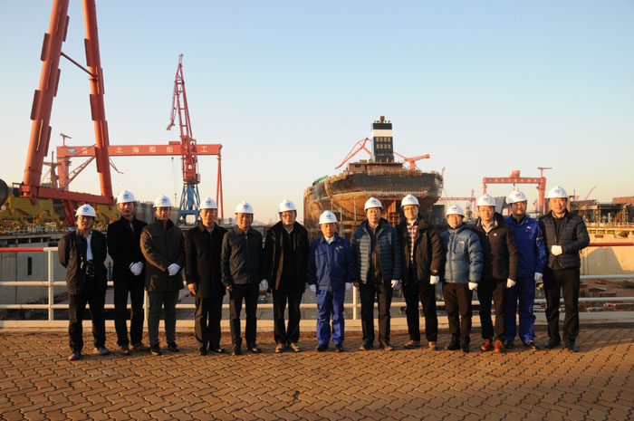 米健教授一行現場參觀了分段制造廠房、50萬噸級船塢、青島武船碼頭等重點船舶建造設施,以及40萬噸級VLOC、海工模塊等主要在建產品;公司總經理韓兵向米健教授一行介紹了公司近年取得的成績和未來發展戰略;公司副總經理谷克超就公司基本情況、產品業績、生產能力作了詳細匯報。米健教授對祖國近年來的科技發展成果表示欽佩,對武船集團北船重工取得的成績給予了高度贊揚,他表示,澳門未來實施海洋經濟戰略的趨勢是必然的,希望在國家政策的支持下,與中船重工集團緊密合作,早日取得新突破!