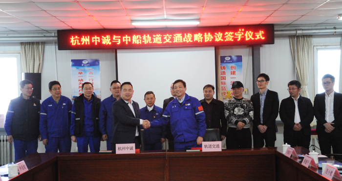 3月9日,杭州金投投資公司總經理湯超、杭州中誠裝備服務股份有限公司董事長蔡建忠一行8人到公司進行參觀洽談,并與中船重工(青島)軌道交通裝備有限公司簽訂了戰(zhàn)略合作框架協議。