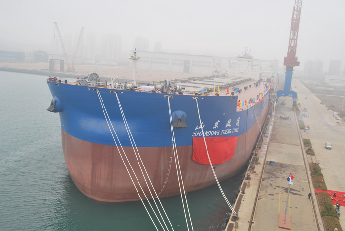 3月30日,公司為山東海運股份有限公司建造的25萬噸礦砂船舉行命名交接儀式并順利交船,這是公司交付的第三艘25萬噸礦砂船,也是今年交付的第二艘船。 公司副總經理王國海與山東海運股份公司副總經理付健及相關單位嘉賓參加了交船儀式。