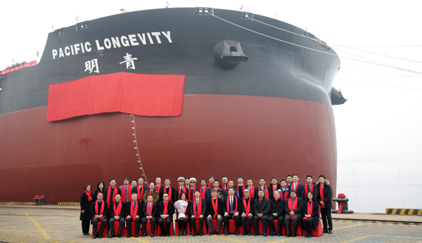 2月22日,公司為招商局能源運輸股份有限公司建造的第四艘新型40萬噸礦砂船“明青”輪命名交付,并于23日拔錨遠航。這是公司今年交付的第1艘船舶,也是40萬噸系列礦砂船中完工的第7艘船。