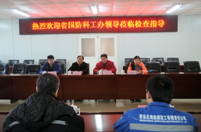 3月2日,山東省國防科工辦軍工處處長龍希江一行四人來公司檢查指導安全工作,公司副總經理王國海及安全環境部負責人向檢查組領導匯報了公司生產及安全管理等情況。省工辦檢查組對公司造船生產現場和安全管理制度、安全培訓等情況進行了檢查,對公司的標準化建設工作給予了認可,同時提出了相關整改要求。公司將迅速落實整改并辦理標準化達標評審的審批工作,力爭3月底實施正式評審。(曉林/圖文)