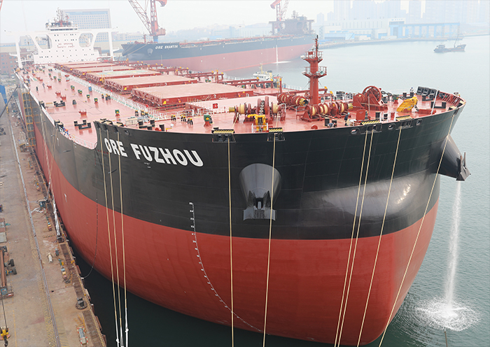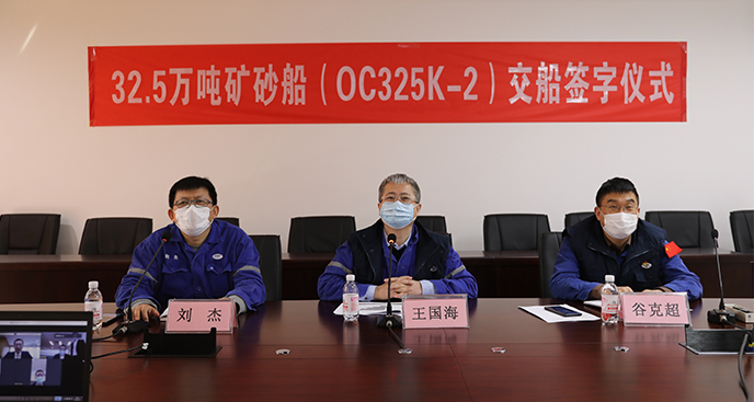 4月15日,公司為工銀金融租賃有限公司和招商局能源運輸股份有限公司建造的32.5萬噸礦砂船“ORE FUZHOU”順利交付,這是繼公司2月份剛剛交付首制32.5萬噸礦砂船“ORE YANTAI”輪之后,交付的同型姊妹船。該船在延續首制船電簽的基礎上,通過視頻會議形式舉辦交船簽字儀式,公司黨委書記、董事長王國海,工銀租賃航運金融事業部執行總經理郭芳萌、招商輪船副總經理丁磊先后講話并就后續產品建造情況進行了座談交流。