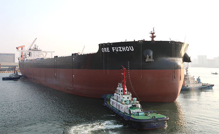 3月23日,公司為工銀金融租賃有限公司和招商局能源運輸股份有限公司建造的32.5萬載重噸礦砂船2號船凱旋歸來,順利靠泊碼頭。