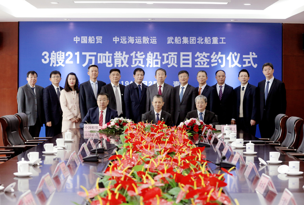 4月25日,公司與中遠海運散貨運輸有限公司舉行新造3艘21萬噸散貨船項目簽約儀式。這是雙方首次進行的一次重大戰(zhàn)略合作,也是我公司在造船市場上開發(fā)的新船型。