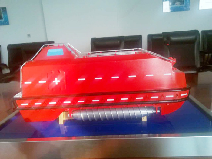 在近海冰凍區工作的海上石油平臺,由于常規救生艇在海水冰凍期無法投入使用,一旦發生井噴、火災等意外情況,逃生和救援工作將無法有效實施。為此,急需研制開發一種在水中和冰面都可以正常使用的救生艇(冰區兩棲救生艇),以保證油氣開發安全生產,保護海上工作人員的人身安全。即將研制的冰區兩棲救生艇總長8.12米,乘員40人,采用玻璃鋼(碳纖維)材料制作,柴油機驅動;除了具備常規石油平臺用救生艇的功能外,還能夠在冰面行走。配合該艇專用收放裝置,無論是在水中還是在冰面都能夠安全降放。(趙建國)