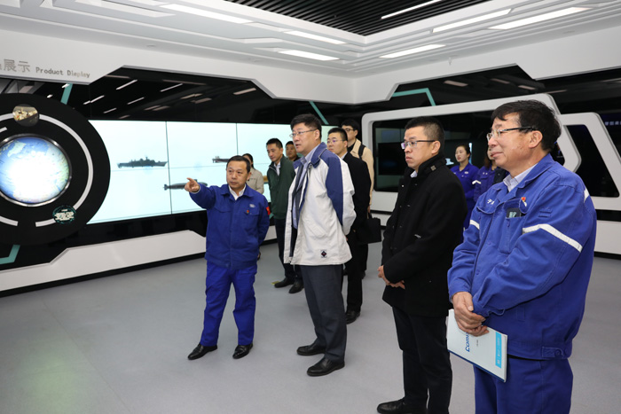 韓兵代表公司對王琦一行的到來表示熱烈歡迎,并向其介紹了北船重工的地理位置、廠區(qū)布局、設(shè)備設(shè)施等基本情況;帶領(lǐng)來賓參觀了民品展廳,介紹了武船集團(tuán)和北船重工的發(fā)展歷程、業(yè)務(wù)范圍及核心產(chǎn)品;陪同來賓一同觀看了武船集團(tuán)宣傳片和北船重工宣傳片。