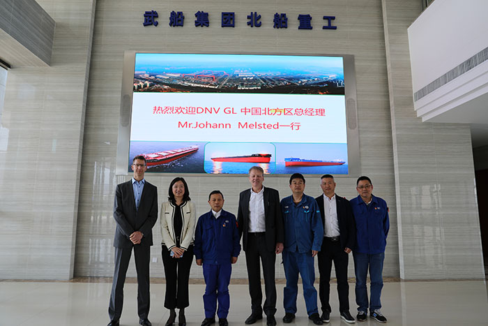 韓兵總經理向來賓介紹了武船集團九大產品板塊業(yè)務和發(fā)展前景,希望后續(xù)32.5萬噸礦砂船、大型集裝箱船改裝等項目的合作能在以往項目的基礎上更加順暢,期待在豪華郵輪、集裝箱船、VLOC LNG動力船、油船、FPSO等項目上深入合作。Johann Melsted總經理表示將通過更加專業(yè)、周到的船級服務支持北船重工各類船舶的建造,促進公司取得更大的發(fā)展,對未來合作充滿信心;Johann Melsted還向韓兵頒發(fā)了DNV GL大中國技術委員會委員證書。