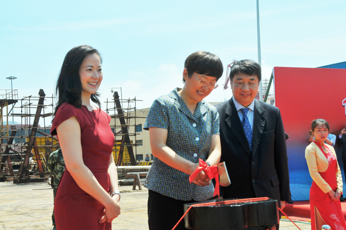 趙安吉代表美國福茂集團和福茂集團董事長趙錫成博士,在致辭中感謝中船重工、中國船貿和青島北船重工建造了美好、綠色、節油的船舶,祝愿她航行順利,并達到船廠的設計規格。