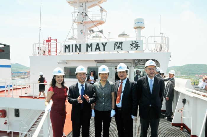 命名儀式由公司副總經理王國海主持。市政府僑務辦公室主任尹明琴、黨組書記陳春雷,市政府商務局副局長淳于賢力,黃島區政府副區長孟慶勝,美國福茂紐約公司資深經理李暉,日本商船三井株式會社總經理Mr. Yuji Manabe,保險公司UK CLUB美國總裁Mr. Michael Jarrett及夫人,利比里亞上海辦事處總經理葉波,ABS大中華區高級副總裁李國偉,育海航運公司總經理唐明,集團公司經濟運行部主任王良,中國船貿副總經理張玉環等領導,公司總經理助理于寶月、鮑會勇、王炳義,經營部負責人等以及部分造船職工參加了儀式。儀式結束后,陳民俊、陳?健⑼豕?海陪同王隨蓮、劉方會等領導及趙安吉等各方嘉賓登上新船進行了參觀。