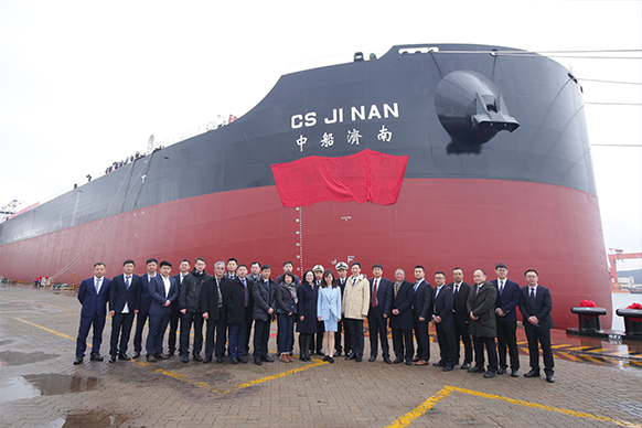 2月25日上午,公司建造的第40艘18萬噸散貨船“CS JI NAN”輪順利交付中船貿易所屬租賃公司。在公司碼頭現場舉行了交船暨命名儀式,三方代表簽署了交船議定書,周怡瓊女士作為新船教母為船舶命名并砍纜。