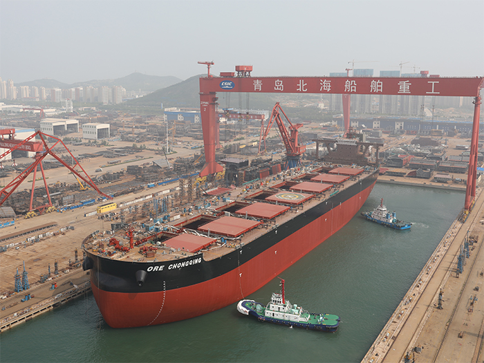 5月15日-19日,公司為工銀金融租賃有限公司和招商局能源運輸股份有限公司建造的32.5萬噸礦砂船4號船順利出塢,3號船開啟為期7天的出海試航,6號船進塢鋪底,為中國船舶租賃有限公司建造的18萬噸散貨船52號船首個分段順利吊裝進塢鋪底。這是繼公司復工復產以來,相繼交付2艘32.5萬噸礦砂船、1艘64000噸木屑船之后,接續實現的重大生產節點。