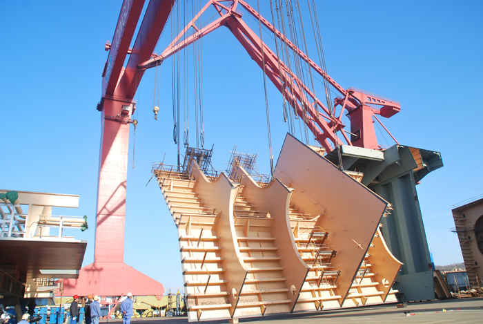 節(jié)后伊始,公司面對在建船舶數量多、交船量大、生產壓力大的局面,積極“適應新常態(tài),推進新發(fā)展”,拉開了造船新高潮。截止3月上旬,已開工18萬噸散貨船6艘、25萬噸礦砂船6艘,在建船舶達到12艘。其中,25萬噸5號船計劃本月交船。目前,2號造船塢內同時在建三艘船,1號塢在建2艘,其他船舶分別處于大合攏、分段制造、下料階段。按照建造計劃,3月中旬將開建1艘18萬噸散貨船。今年共交船11艘,計222萬載重噸,創(chuàng)歷史新高。